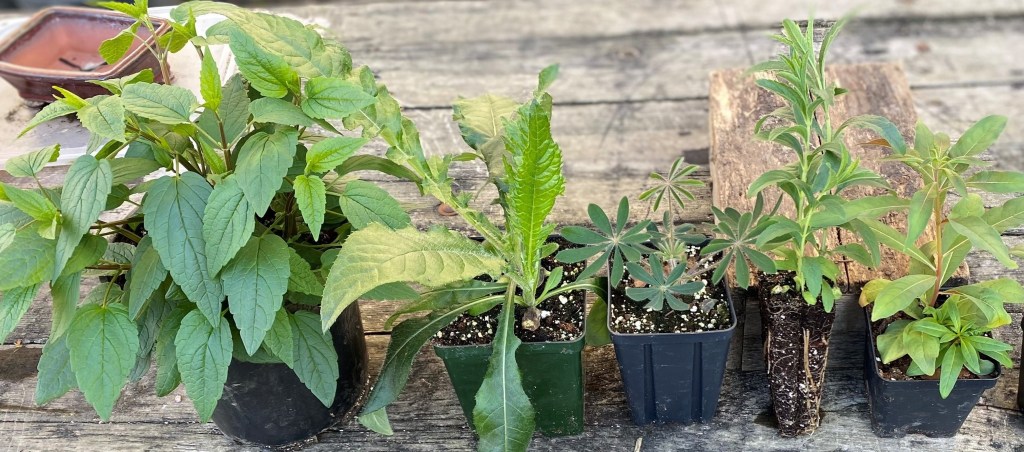 But when you buy seeds from native plant nurseries like Prairie Moon or Wild Seed Project, they don’t give you species-specific information on germination or stratification temperatures. And for many people, this doesn’t matter. If you’re restoring dozens of acres to prairie, you’ll almost certainly be direct seeding rather than planting plugs. And if you’re spreading a seed mix, stratification and germination temperatures don’t matter. The seeds will experience the temperatures they need to experience, and eventually they will germinate (or not). Specific temperatures also don’t matter to the many hobbyist growers who use the milk jug winter sowing method, where seeds sit out all winter and spring in a milk jug, and simply germinate when ambient temperatures reach the correct temperature for the seeds. While I appreciate the simplicity of this method, I don’t use it. I like to sow my seeds early, as early as November for slow species like Gentiana andrewsii. My goal is to give my seedlings one full year’s worth of growth before planting them out each spring.1 This ensures that most of my transplants flower their first year in my garden (such as Lupinus perennis subsp. perennis and Echinacea tennesseensis), and I also find that perennials survive their first year at a higher rate–and with less babying–when planted large and early in the season.