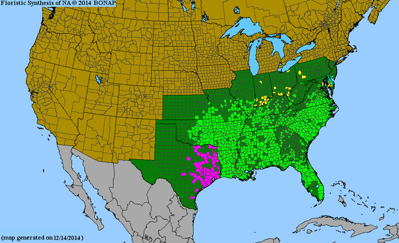 P. incarnata germinates best at about 35°C/95°F. These seeds love the heat, which makes sense, because they are native to the southeastern United States (see Figure 2), and they germinate during the summer. If you’ve tried and failed to grow P. incarnata from seed, you probably didn’t have the seeds hot enough. Benvenuti, Simonelli, and Macchia tested P. incarnata germination at various temperatures, and they found that 30°C/86°F was required to see germination over 50%, with 35°C/95°F producing the best results (see Figure 3).1