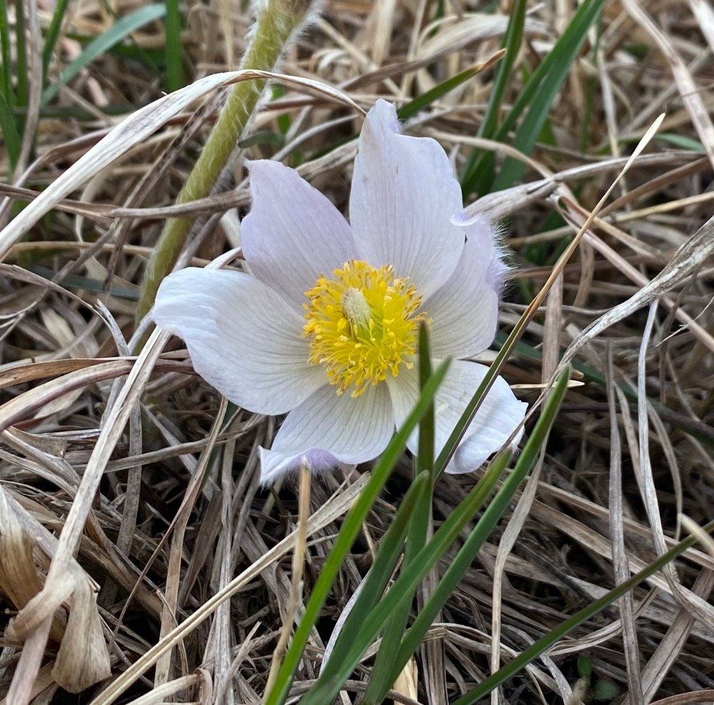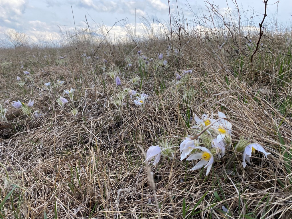 In my area, Pulsatilla nuttalliana (which some seed sellers call Anemone patens var. wolfgangiana, more on that below) is the first plant to flower in the upland prairie, usually in early- or mid-April. So when sleepy queen bumblebees wake up in the spring, this flower might provide their first pollen feast. And after a long Midwestern winter, it certainly puts a pep in my step to feast my eyes upon its delicate blooms. It’s not common in home gardens, and it’s very rare in degraded ecosystems. But if you visit a dry or dry–mesic prairie remnant in Wisconsin, you’re likely to be treated with a display of thousands of blooms.